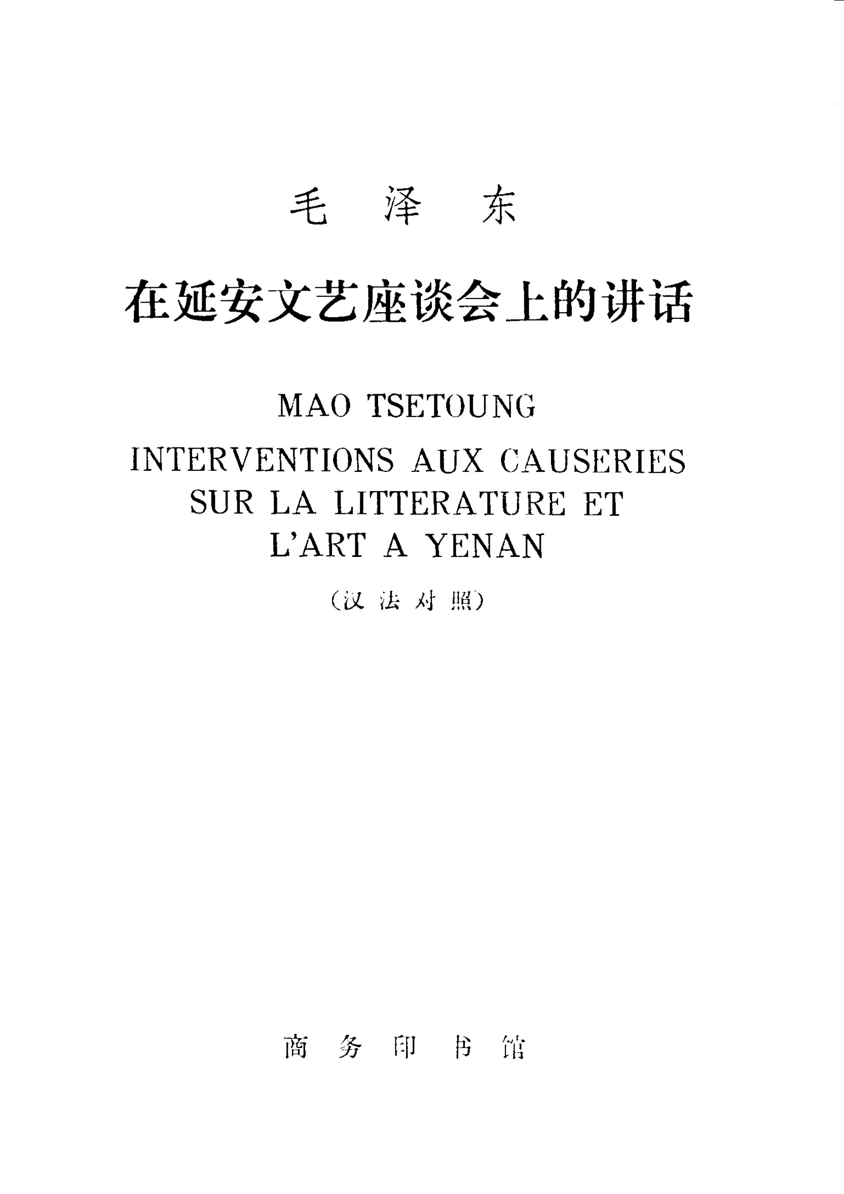 毛泽东在延安文艺座谈会上的讲话(汉法对照):等您坐沙发呢!